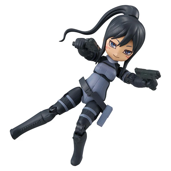 All three characters come in the box set with multiple face plates and their signature weapons. There’s supersonic Llenn firing P-chan, Fukaziroh blasting her double grenade launchers, and psychotic Pitohui with a veritable artillery! Enjoy all three figures from the best gun girl anime ever – ooh, shots fired!