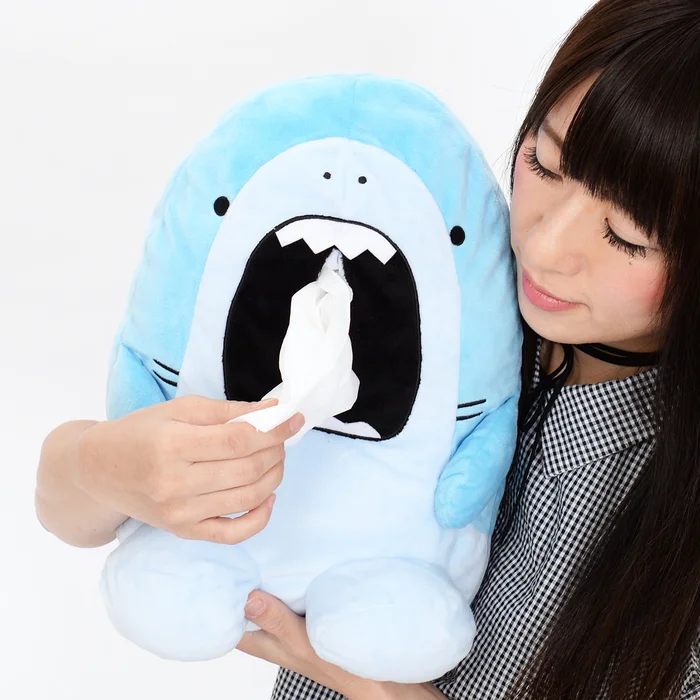 Even fearsome sea creatures catch cold sometimes! Let Hoojiro the great white shark help you out with this cute plush tissue box featuring the iconic Same-Z character. Measuring an impressive 13” tall, the box is positioned with Hoojiro sitting upright complete with adorable fin feet on the bottom.